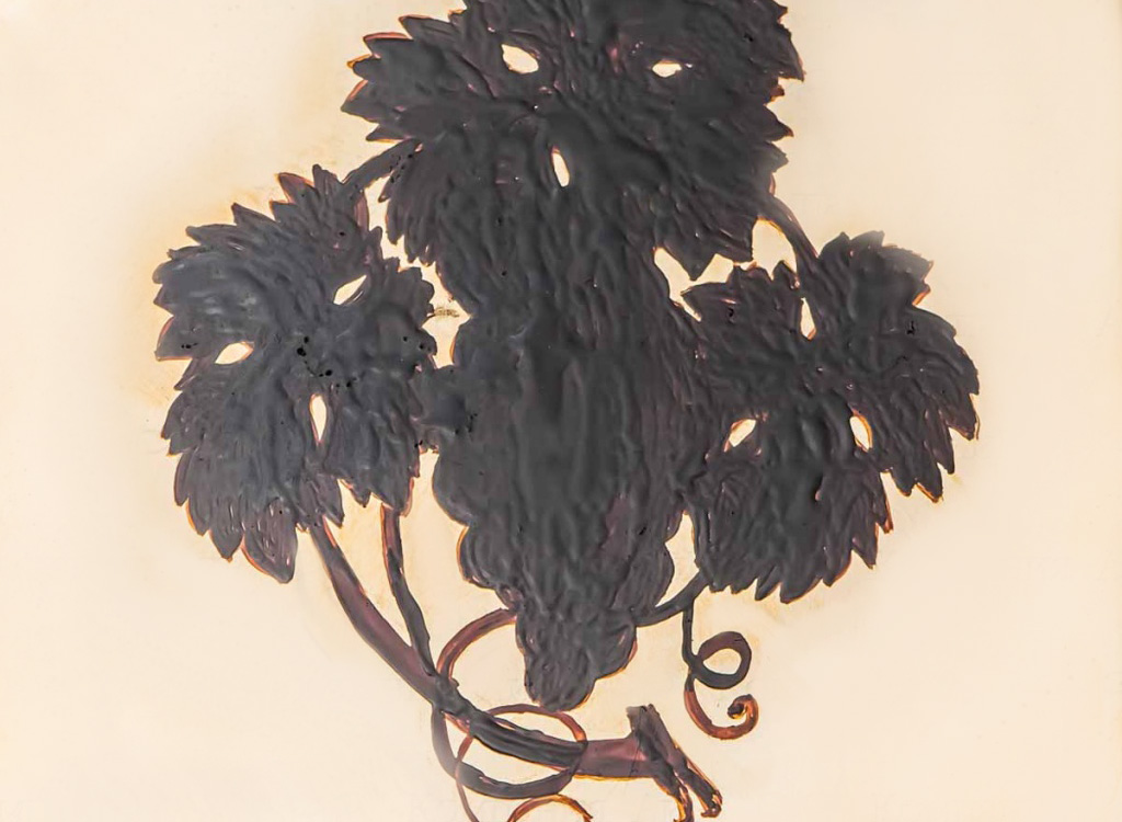 بعد التجفيف في الفرن، يخدش الفنان الورنيش بإبرة، مما يعطي النمط التفاصيل اللازمة. كما رأينا في المثال، يفصل السيد العنب عن الأوراق.
