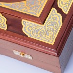 Wooden backgammon with carved details. Decorated with gold overlays. Let’s make backgammon to order. We will develop a design for you.